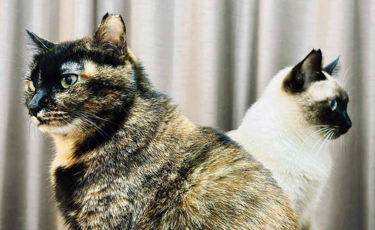 「ふと猫を見たらガンダムSEEDのOPが始まってました」というつぶやきと共にXに投稿された1枚の写真。写っているのは、2匹の猫ちゃんです。左側には強い眼差しで遠くを見つめるサビ猫さん、右側には少し憂いを帯びた表情で反対側を向くシャム猫さんが、絶妙な距離感で背中合わせに佇んでいます。