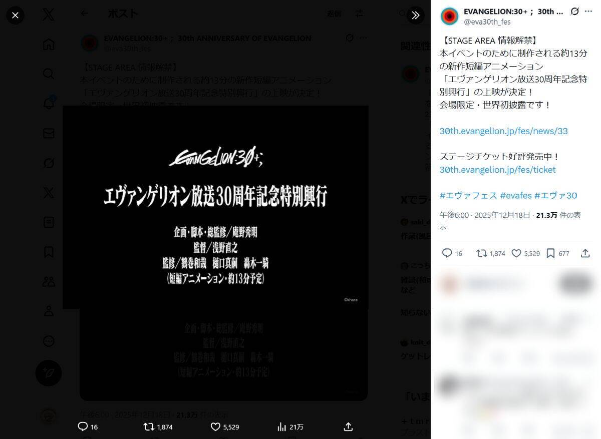 — EVANGELION:30+; 30th ANNIVERSARY OF EVANGELION (@eva30th_fes) December 18, 2025
