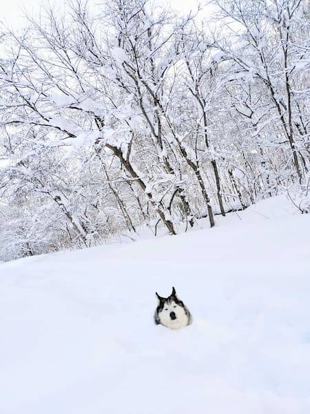 しかしハウルくんはシベリアンハスキーなので、雪が大好き。寒がる様子はまったくなく、そのまましばらく雪に埋まっていたのだとか。
