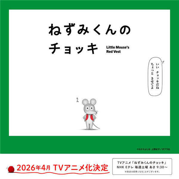 株式会社ポプラ社は2月17日、ロングセラー絵本「ねずみくんの絵本」シリーズ(作:なかえよしを/絵:上野紀子)のテレビアニメ化を発表しました。