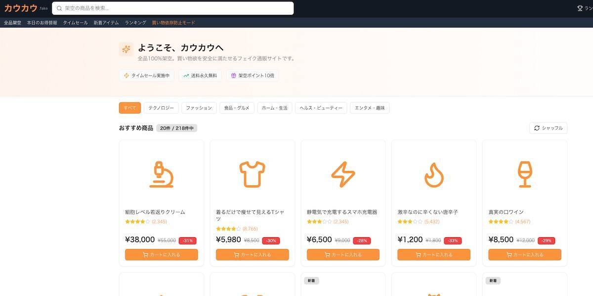 「完全に絶対架空の商品」というコンセプトで作っています。商品の数が多いほど面白いサイトになると思っているのでAIに頼っているところが大きいですが、最終的な調整はやはり人力でやっています。