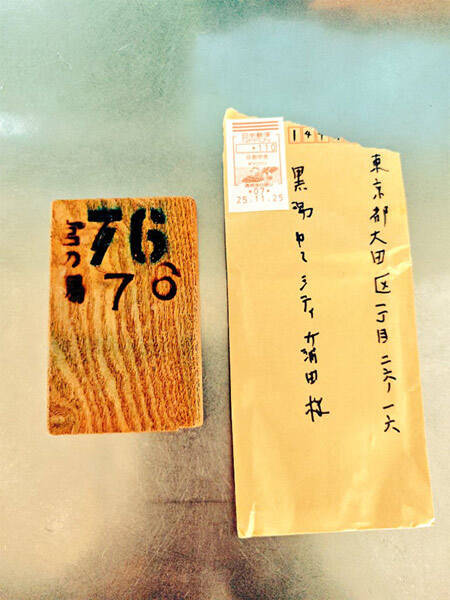 寄せられた情報の通り、同店では現役時代に下足鍵として使われていた木札を、店内の注文札として再利用していました。本来は注文の受け渡しの際にカウンターで回収するものの、中には返却されず、そのまま持ち帰られてしまうことも少なくないのだとか。「今回も、お客様が間違えて持ち帰ってしまったのでしょう」と大里さんは話します。