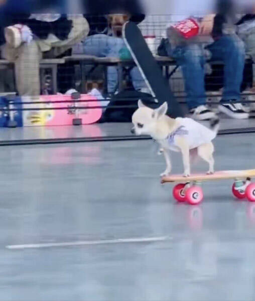 このほど飼い主さんが公開したのは、犬用のスケートボードを一生懸命に漕ぐチワワ・パピコちゃんを映した動画。