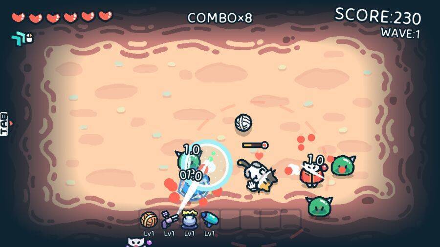 各ウェーブをクリアするごとにフードやアイテム、武器を選んでネコを強化していくシステムが採用されており、武器やタレントの強化によって毎回異なる成長ルートを辿るため、自分だけの自由なビルド構築を楽しむことができるそう。