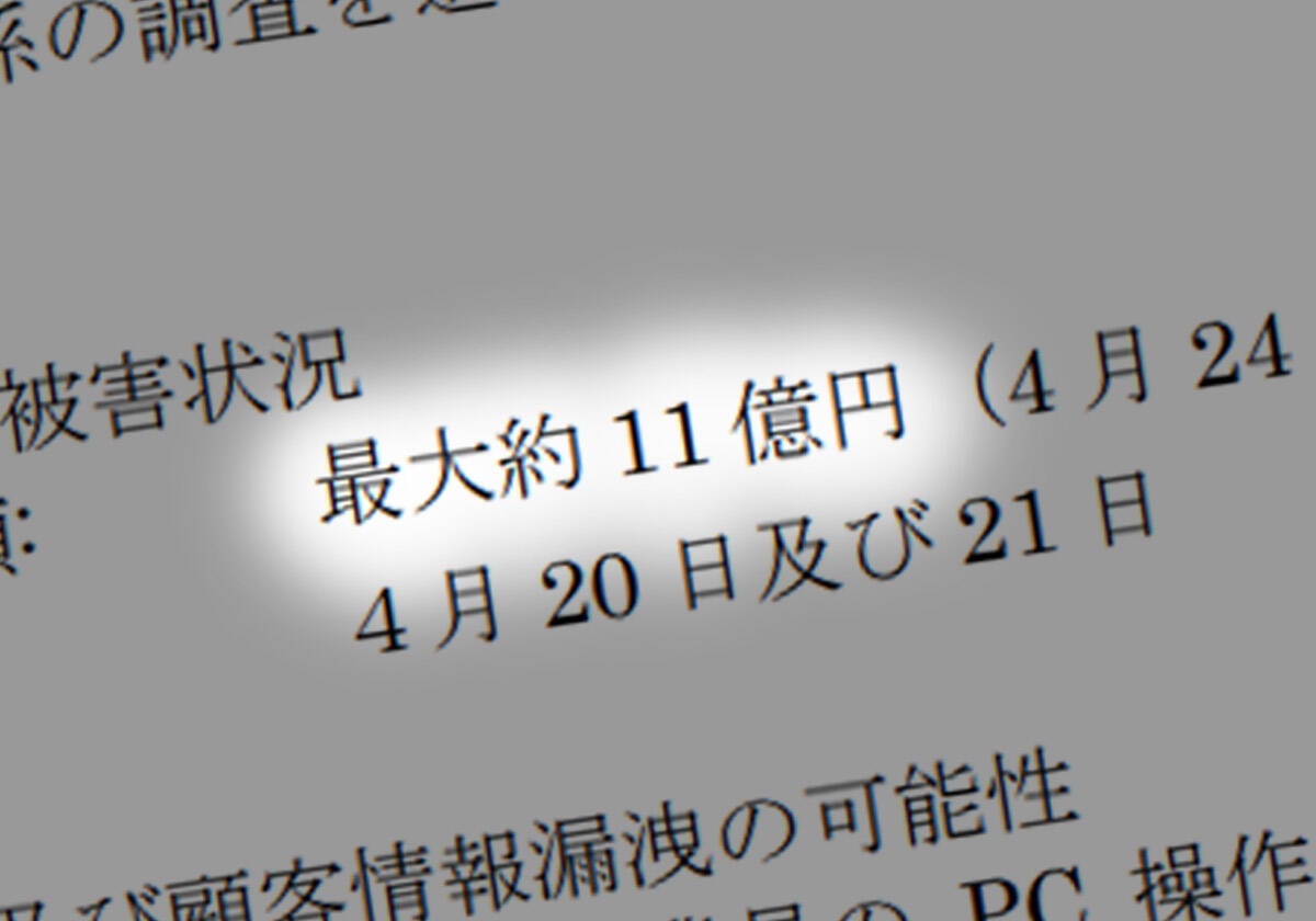 発表によると、事案が判明したのは4月21日。取引先銀行から「不審な送金が行われている」と連絡があり、社内で確認したところ、4月20日および21日に同社従業員のアカウントから、会社の銀行預金口座から外部口座への送金が実行されていたことが分かりました。