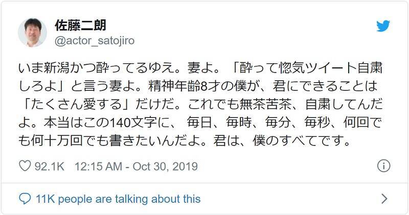 — 佐藤二朗 (@actor_satojiro) October 8, 2019