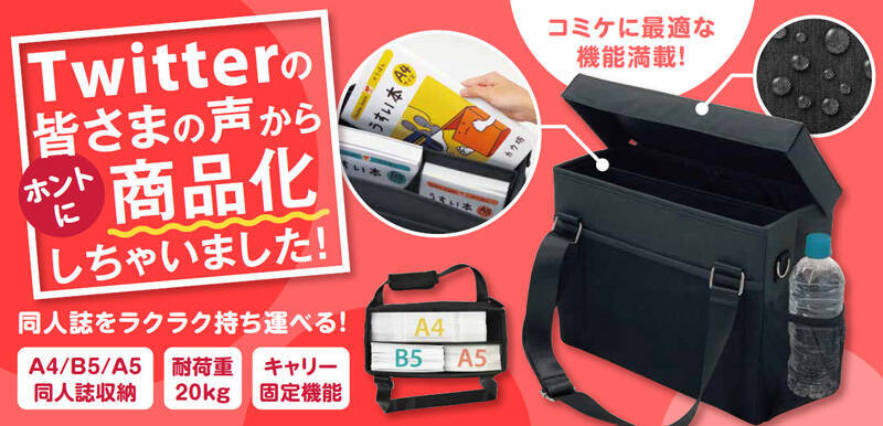 「コミケ用ミーティングバッグ」は、コクヨグループでオフィス通販を行う株式会社カウネットが開発した商品。同人誌イベント「コミックマーケット」(コミケ)参加者の間で、同社の商品「ミーティングバッグ」(書類やファイルの持ち運びバッグ)が注目されていたことから、専用のニーズを反映させた商品として開発されました。