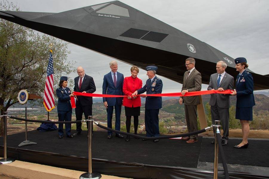 12月7日のお披露目式には、記念館を運営するレーガン財団のフレッド・ライアン理事長のほか、アメリカ空軍からバーバラ・バレット空軍長官と、デイビッド・ゴールドファイン空軍参謀総長が参列。ロッキード・マーティンのスカンクワークスを統括するジェフ・バビオーネ副社長に、かつてのF-117パイロット、リック・ライト氏も参列し、リボンカッティングを行っています。