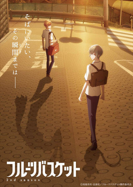 今回公開された2nd seasonのティザービジュアルには、「そばにいたい、その瞬間(とき)まではー」というキャッチコピーとともに、夕日の中の草摩由希(CV:島﨑信長)と草摩 夾(CV:内田雄馬)の姿が物悲しく描かれている。