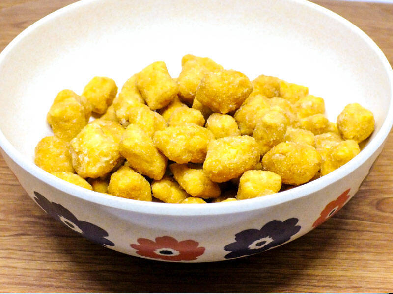 この「にゃりんとう カリカリ気分のかりんとう」(900円/税別)という商品、猫好きにはお馴染み「フェリシモ猫部」と、ご当地ラーメンで知られる「小笠原製粉」により共同開発されたというもの。あれだけ美味しそうに猫が食べるんだから、ちょっとカリカリを食べてみたい……いやでもキャットフードだし、という悩みを気にせず、猫になった気分でカリカリと食べられる小粒のかりんとうです。