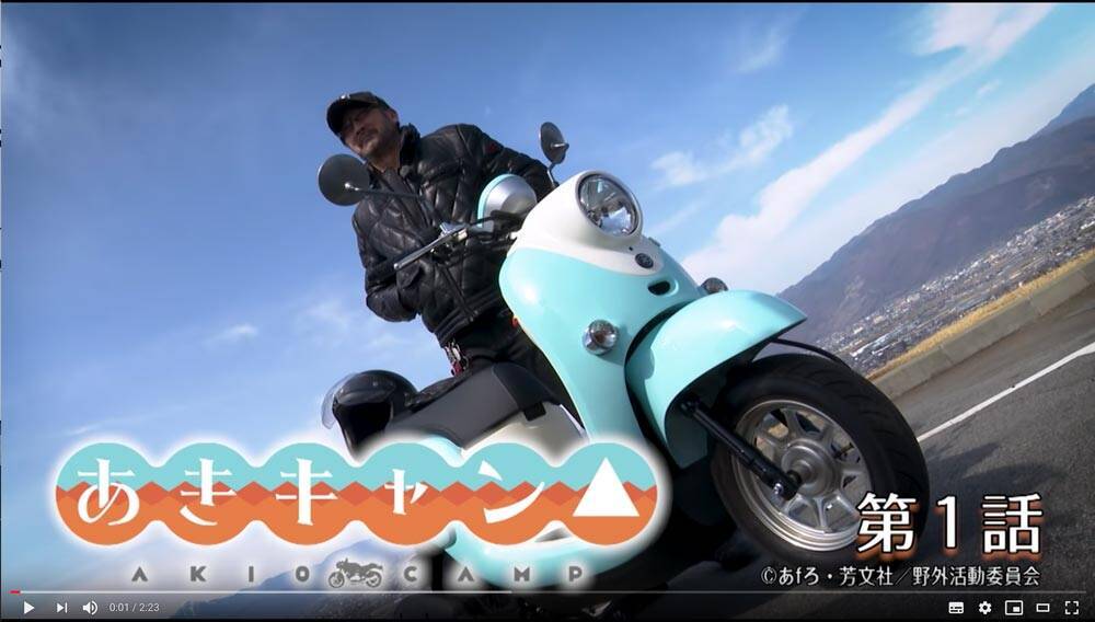 第1話では、志摩リンの祖父が乗っているようなバイクで、山梨県笛吹市にやってきた大塚さん。作中でリンが乗っているスクーター(ヤマハ・ビーノ)に試乗して周辺を散策します。動画の終わりには、犬山あおいを演じる豊崎愛生さんが木立の中を歩く「愛生(あき)キャン△」と題した写真も。