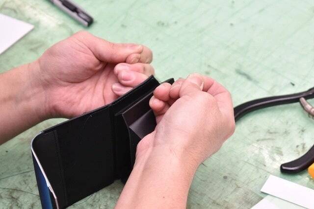 出来上がったフィッシュレザーをこだわりの色へ染め上げ、製品へと加工していきます。⑦完成
