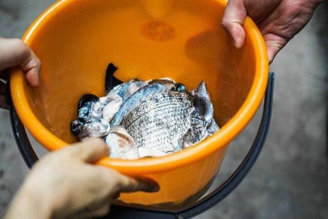 ①魚の革を回収する