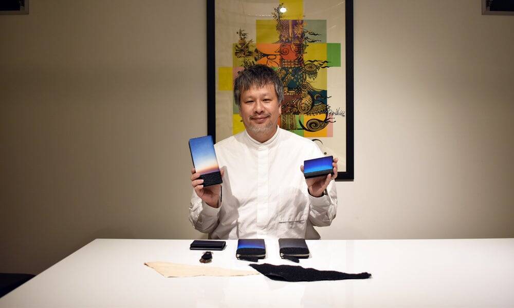 それと並行して、レザーを自分が思い描くイメージのようにグラデーション染色ができる会社を探しましたが、なかなか見つかりませんでした。その後、会社名は非公開ですが、元々グラデーション染色をされていない会社に頼み込んで、グラデーション染色をしていただけることになりました。何度も何度もテストを繰り返して、自分のイメージする美しいグラデーションを描いていただけるようになりました。