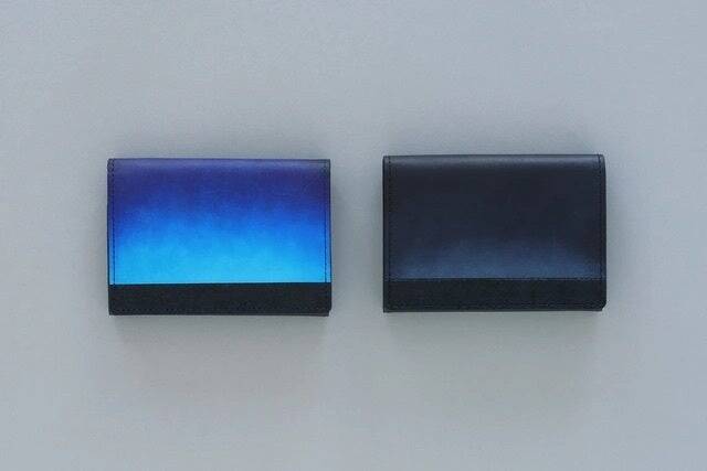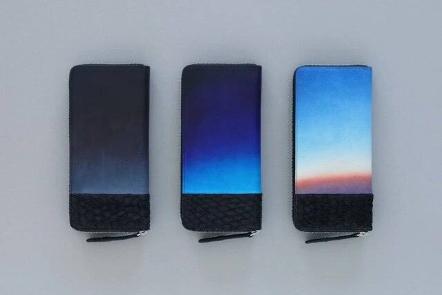 フィッシュレザーの鱗模様を「海の波」に見立て、グラデーションレザーを「変わりゆく空」に見立て、美しい風景をそのままお財布に。