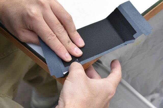 均一に適量の糊を塗って貼り合わせます。適量だとしっかりと強度を保て、糊もはみ出しません。