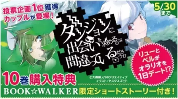 株式会社ブックウォーカー(本社:東京都千代田区 代表取締役社長:安本洋一)では、2016年5月17日(火)に発売するGA文庫の大人気作品『ダンジョンに出会いを求めるのは間違っているだろうか』の第10巻に、大森藤ノ先生の書き下ろしによるショートストーリーを期間限定の購入特典としてプレゼントいたします。