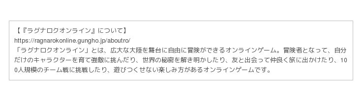 ガンホー・オンライン・エンターテイメント株式会社は、ファンタジーオンラインRPG『ラグナロクオンライン』において、本日、以下の情報を発表いたします。