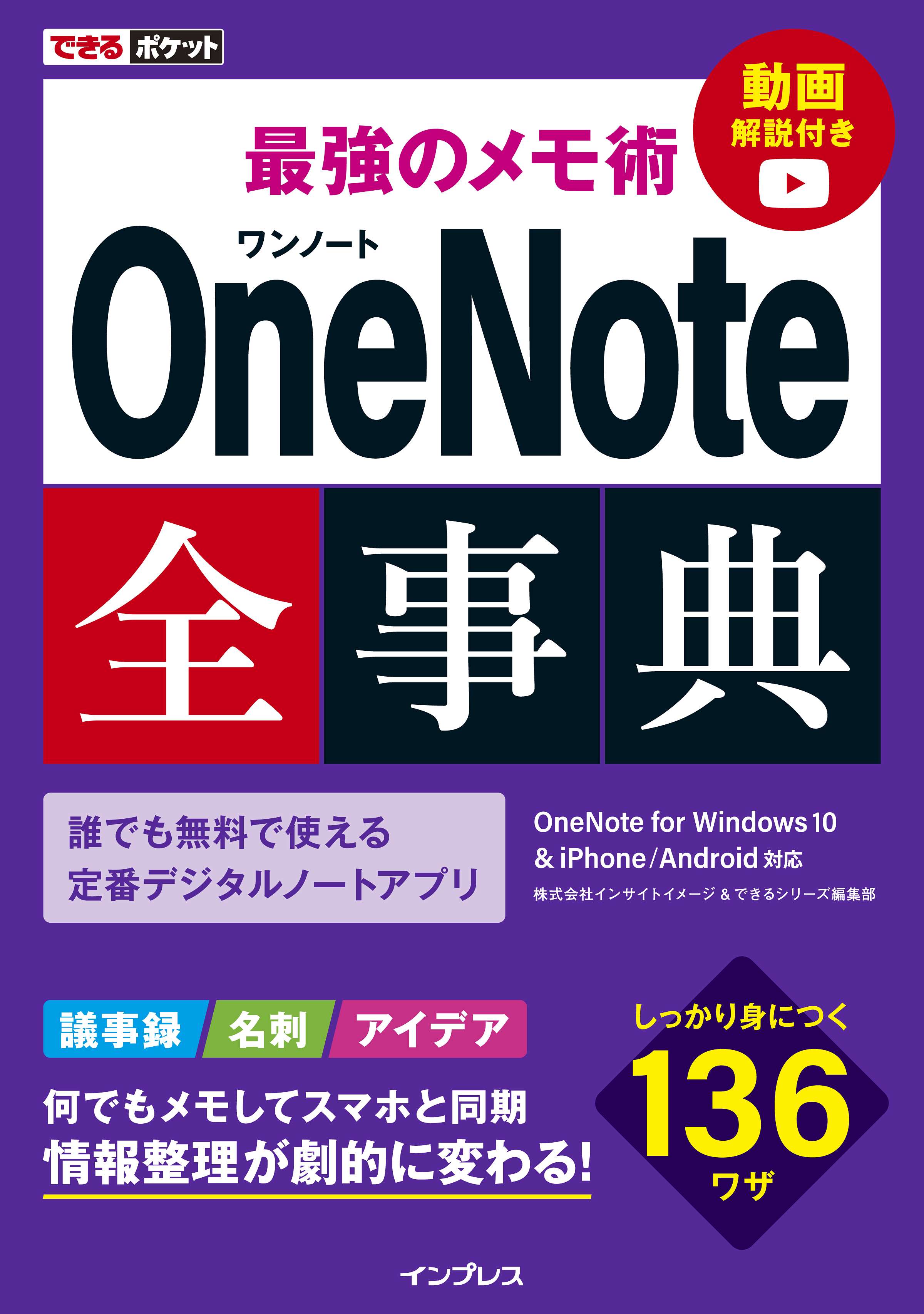 『できるポケット 最強のメモ術 OneNote全事典』は、マイクロソフトが提供するデジタルノートアプリ「OneNote」の解説書です。OneNoteはパソコンやスマートフォンなど複数のデバイスから無料で利用できるほか、Windows 10には標準でインストールされています。テキストや画像、手書きメモなど、さまざまな情報をまとめられるのが特徴で、ビジネスパーソンの注目を集めています。