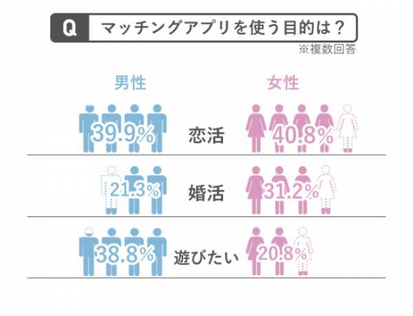 マッチングアプリを使う目的でもっとも多かったのは、男女ともに【恋活】でした。