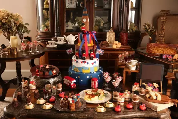 専属パティシエ特製の英国の伝統家庭菓子“イートンメス”や、アイコニックなビクトリアサンドイッチケーキなど約20種と、香り高い紅茶とともに、まるで英国のお茶会に招かれたような優雅な時間をお過ごしいただけます。