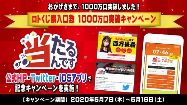 「当たるんです」ロトくじの購入数1,000万口突破を記念いたしまして、公式HP・iOSアプリ・Twitterにて特別キャンペーンを実施いたします。