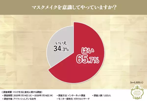 「マスクメイクを意識してやっていますか?」という質問をしたところ、6割以上の方が『はい(65.7%)』と回答しました。