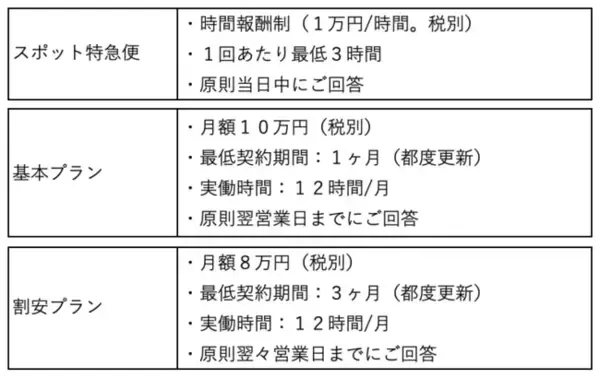 本サービスであれば、スポット相談だと最低3万円(税別)からご相談を承ります。