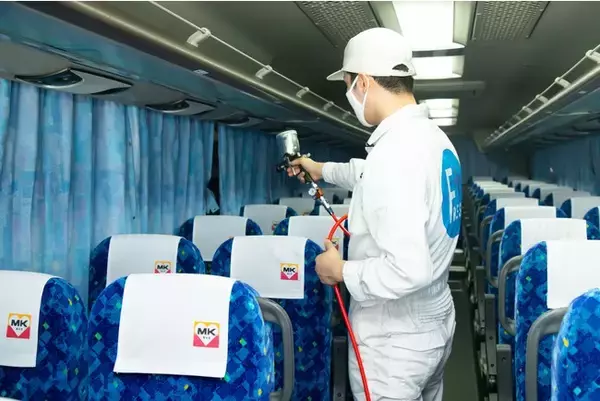 新型コロナウイルス感染者数が増加し、徹底した感染予防対策が求められる中、バス事業を展開する弊社では、徹底的な感染対策を行うよう努めて参りました。ご利用いただくお客様に心地良いと思っていただけるよう対策を行ってきた一方で、不特定多数の方が乗り合わせるバスにおいては、どうしてもお客様が抱かれる不安感を拭えないのではないかと考えていたのも事実です。この度は、少しでも安心してお客様を送迎できるよう、光触媒コーティングをバスの内外に施工することになりました。