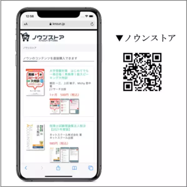 これまで「ノウン」では、書籍の付録としてデジタルコンテンツが提供される方法が主でしたが、このたびの「ノウンストア」オープンにより、スマートフォンやタブレットからデジタルコンテンツのみを直接購入することが可能になりましたので、ユーザーは思い立った時に、どこでも手軽に学習いただけるようになりました。また「ノウンストア」で容易にデジタル教材販売が可能となったことから、今後はコンテンツホルダー様とも連携しながら、「ノウンストア」でご購入いただけるコンテンツの充実にも取り組んでまいります。コンテンツ販売開始第一弾として、Jリサーチ出版の英語スピーキング学習教材や、ネットスクール株式会社の税理士・簿記の試験対策教材を提供いたします。