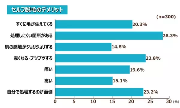セルフ脱毛のメリットは「安い」(37.0%)、デメリットは「処理しにくい箇所がある」(28.3%)