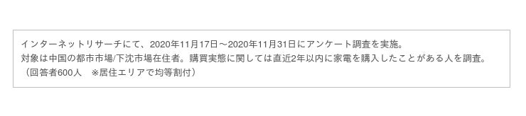 次に、それぞれの市場在住者の中で家電を購入した方の特徴をみてみました。世帯月収に開きはありましたが性年代別と特徴はあまり変わらず。しかし購入商品を比較してみると、中国ブランドの割合が最も高いながら、都市市場在住者は日本産のもの、下沈市場在住者は韓国産のものを好む傾向にあることが分かりました。