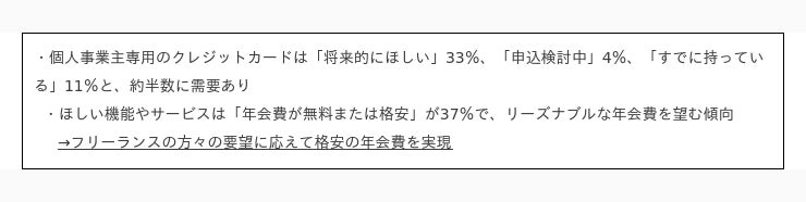 【techcareer会員への個人事業主専用のクレジットカードに関する利用動向調査】