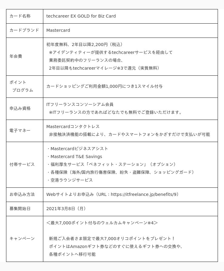 【「techcareer EX GOLD for Biz Card」について】