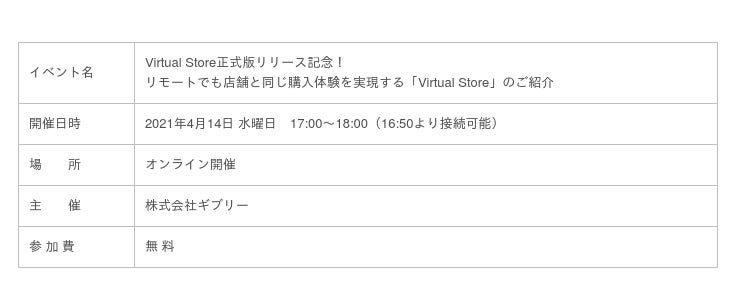 「Virtual Store紹介ウェビナー」を実施いたします。
