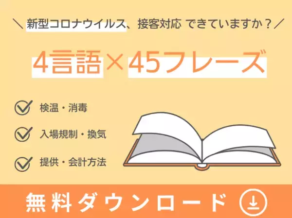アイ・ディー・エー株式会社(本社:大阪市北区太融寺町、代表取締役:ボーディン トッド リチャード)は、昨年リリースした「新型コロナウイルス対策の接客用語集17フレーズ×4言語」を、45フレーズに拡大した翻訳用語集を無料で配信することをお知らせいたします。