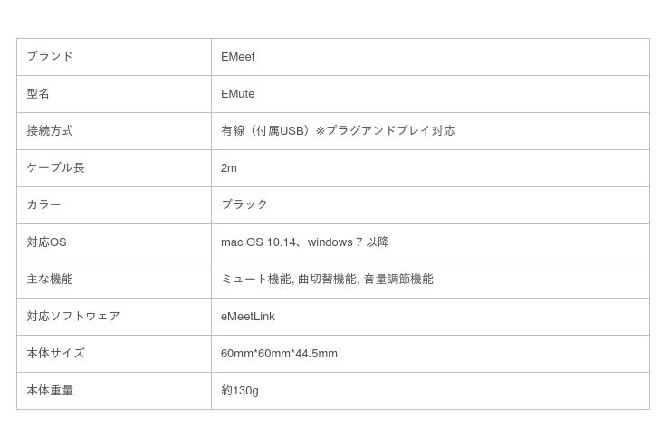 EMuteは多機能ボリュームコントローラーであり、本体サイズは直径6センチ・高さ4.5センチ、重さは約130グラムと非常にコンパクトで持ち運びにも適しています。
