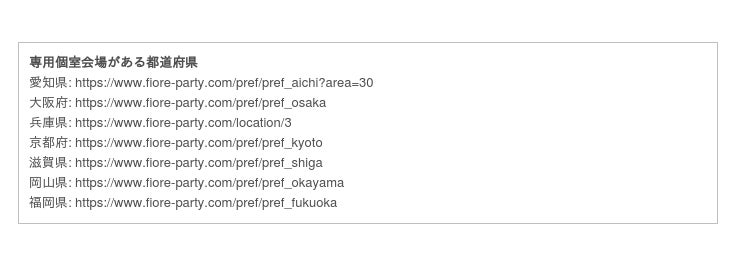 名古屋(名駅)、大阪(梅田、心斎橋)、神戸(三宮)、京都(烏丸)、滋賀(草津)、岡山駅前、福岡(天神)ではパーティー専用個室会場をご用意し婚活パーティーを開催しています。また、専用個室会場のある東海・関西・岡山・福岡だけでなく、東北・関東・北陸・中部・東海・中国・四国・九州と全国規模で公共施設等にて行うイベント企画などもご用意しております。