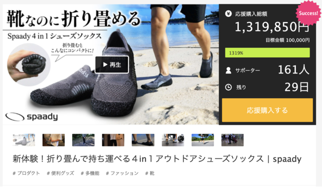現在、こちらのSpaadyシューズソックスを11月18日までMakuakeにて先行予約販売しております。
