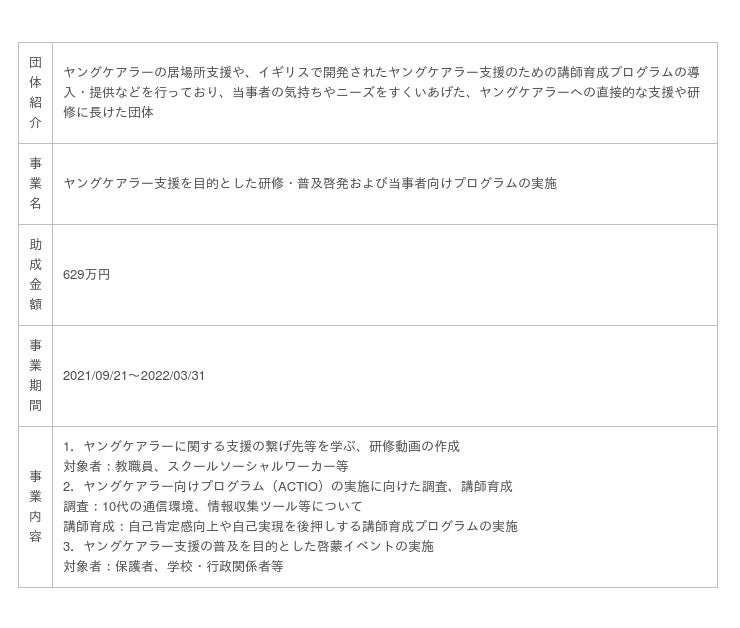 ヤングケアラーに関する助成事業内容の詳細