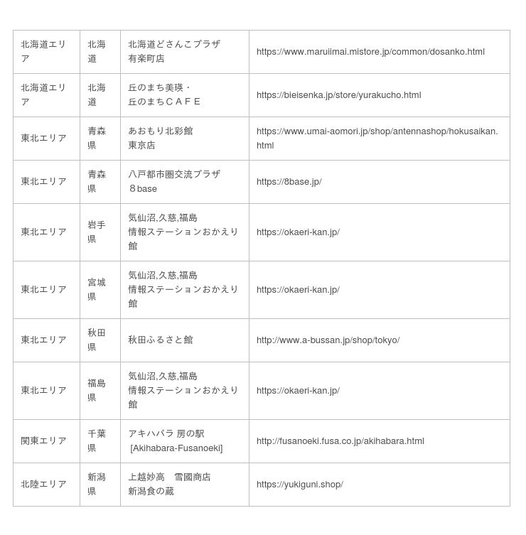 青森県南東部の8つの市町村(八戸圏域)のアンテナショップです。地酒、南部せんべいなど定番のものから「地元ならでは」の個性的なものまで、バラエティに富んだ特産品を取り扱っています。