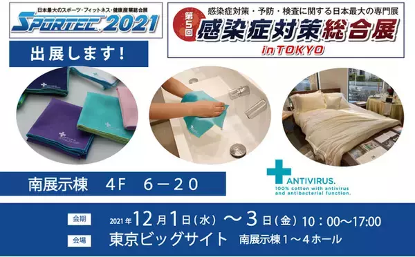 繊維製品企画販売のブルーミング中西株式会社(本社 東京都中央区 取締役社長 中西一)は、2021年12月1日(水)から12月3日(金)に開催される、『第5回 感染症対策総合展inTOKYO』に抗ウィルスブランド『ANTIVIRUS.(アンチウイルス)』で出展いたします。