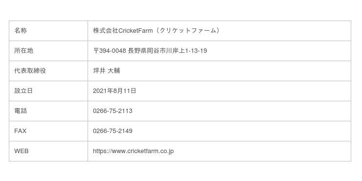 株式会社CricketFarm(以下、クリケットファーム)は、長野県岡谷市にて、食用および美容向けの商品開発を目的としたコオロギの養殖を開始いたしました。これまでINDETAILグループとして培ってきた先進技術を駆使し、古来より昆虫食が根付く諏訪地方にて、IoTを用いた次世代型のスマート養殖を展開してまいります。