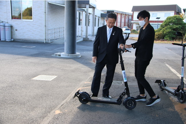 そのような中、株式会社EXxと、電動マイクロモビリティ(電動キックボード)を活用した観光・地域振興、環境に優しい公共交通網の構築、防災レジリエンスの強化などについて意見を重ねていった結果、これらを柱に持続的なまちづくりを実現することを目的とした「包括連携協力に関する協定」を締結する運びとなりました。
