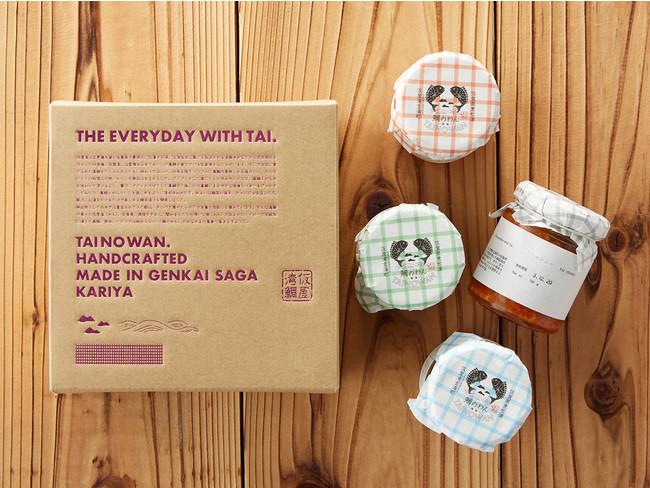 玄海町・仮屋湾で丁寧に育てられた養殖真鯛の、プリプリとした歯ごたえや甘み、コクをたくさんの人たちに味わってほしいと開発された「鯛のわん」。贅沢にザクッと大切りされた真鯛の切り身がたっぷり入っている、このご飯のお供は、「鯛めんたい」「鯛チャンジャ」「鯛味噌バター」「鯛のお茶漬け」の4種類の味で販売されています。思わず写真に撮りたくなる可愛い容器やギフトボックスに入っているので、大切な方への贈り物にもオススメです。