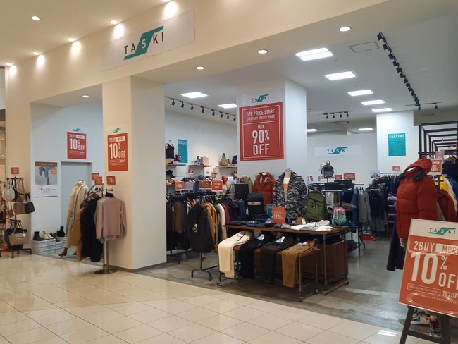 滋賀県守山市にある「TASKI ピエリ守山店」は、型落ち、シーズンオフ、わずかな傷といった様々な理由で廃棄される「もったいない“モノ”」をそのまま廃棄するのではなく、オフプライスにて消費者のもとにお届けするアパレル・雑貨販売店です。