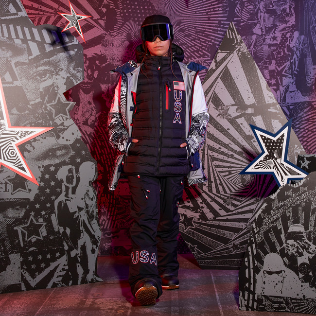 このコレクションには、Volcomの徹底的にテストされた技術要素と、卓越したデザインの詳細が組み合わされており、米国のスノーボードチームがスタイリッシュにパフォーマンスすることができます。それぞれの作品は、アメリカを誇らしげに表現するパッチとトリム、金メッキのジッパープルタブ、幸運を呼び込むためにジャケットに隠されたラビットフェイクファーのキーチェーン、そしてVolcomブランドを今日の姿にしてきた伝説の歴史に敬意を表する特徴的なコラージュプリントでユニフォームを飾ります。こちらのコレクションは、ブランドのシグネチャーである白黒のオプティカルアートスタイルが全体的に施されています。