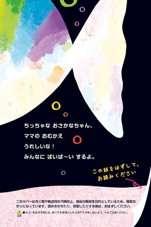 商品の解説要素がにぎやかにデザインされたカバーをはずすと…、おさかなちゃん&ママと、カラフルなタイトルが映える、ほっこり楽しい表紙が登場します。