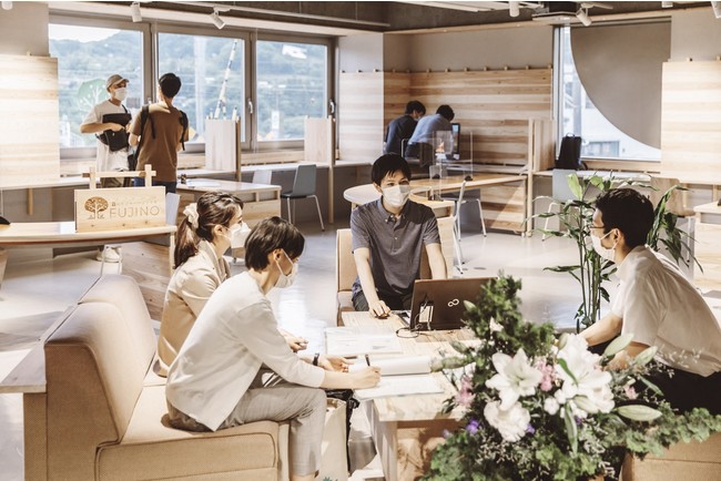 相模原市では、地域内外の交流拠点を作ることによる地域活性化を目的とし、令和3年7月から藤野駅近くのテレワーク拠点「森ラボ」の実証運営を開始しました。これまで370人以上の新規利用登録者、1日平均10人弱が利用しています。