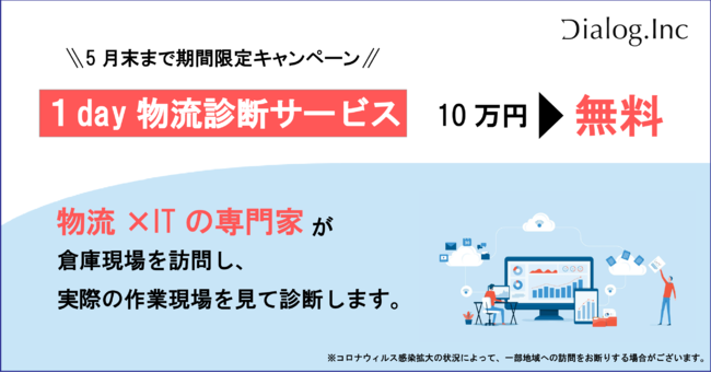 株式会社ダイアログ(本社:東京都品川区、代表取締役:方志嘉孝)は、「1day物流現場診断サービス」を2022年5月末お申込み分まで、無料で実施するキャンペーンを開催いたします。